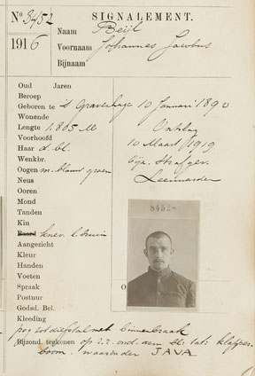 Geboren: 10-01-1890 Geboorteplaats: 's Gravenhage Beroep: fuselier Bijzondere Strafgevangenis Leeuwarden Inschrijving: 03-06-1916 Uitschrijving: 10-12-1918 Veroordeling: 2 jaar gevangenisstraf Misdrijf: desertie en poging tot diefstal Slachtoffer: